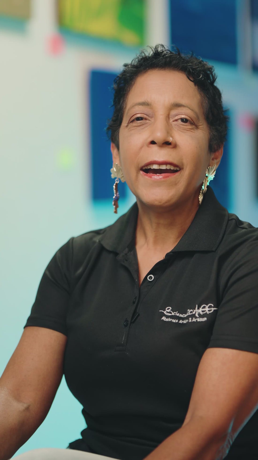 Gina Gray is a self-taught, professional abstract/mixed media artist from Jamaica, whose formal education is in the sciences, with a BSc in Pure & Applied Chemistry and a Masters in Forensic Science.